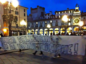Manifestation des ultras de Brescia devant le Palazzo Loggia, où se tenait un Conseil Municipal, contre l’acquittement prononcé par le Tribunal de Vérone en faveur des Policiers accusés d’avoir violemment frappé Paolo Scaroni, le 24 Septembre 2005 lors d’un match contre le Hellas…